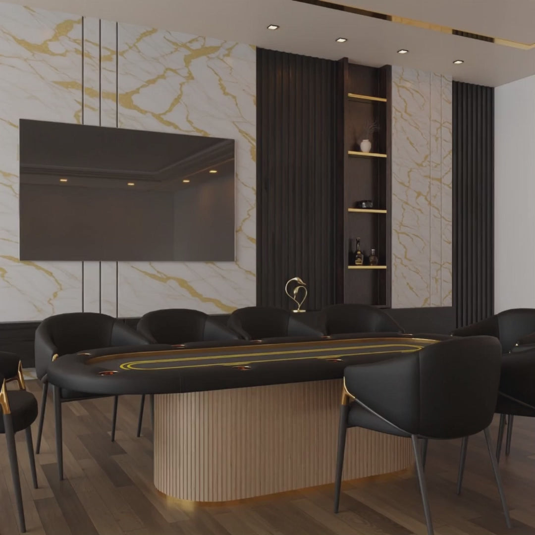 Upgrade your game nights with this sleek black and gold poker table, designed for style and performance.